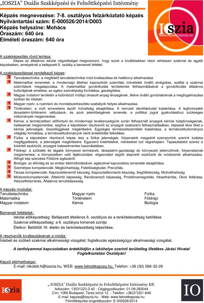 E-mail: nikolett.h@ioszia.hu, WEB: www.felnottkepzes.hu, Telefon: +36 (30) 586-32-29