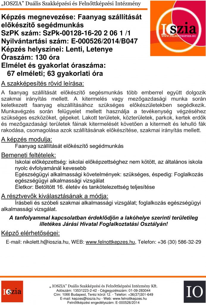 (OKJ: 34 811 04, Engedélyszám: E-000526/2014/A016)